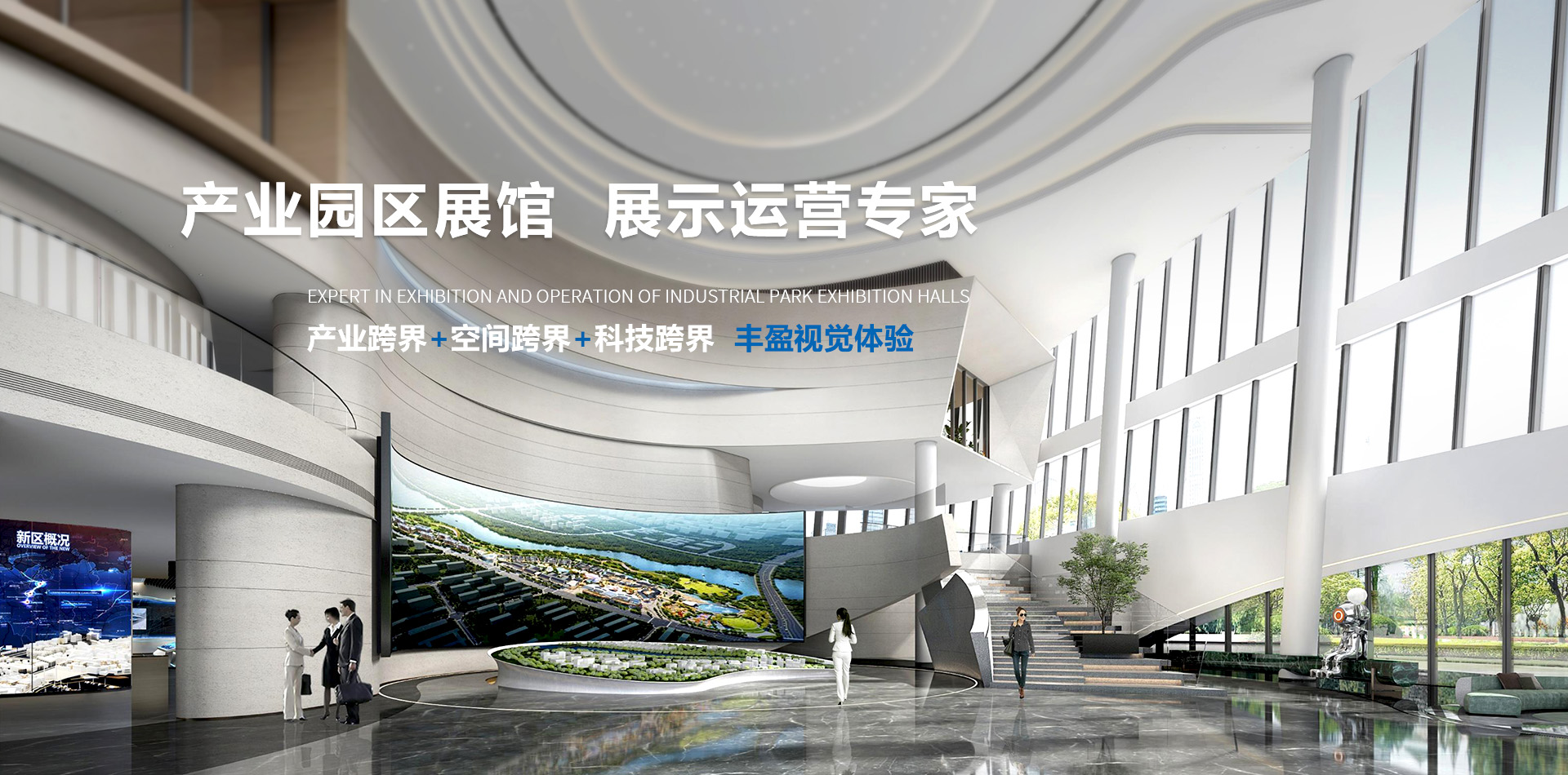 華竣國際集合了產業(yè)定位、前瞻策劃、創(chuàng)意設計、數字視覺、定制工程、生態(tài)運營為一體的全流程展示服務,致力于為城市、產業(yè)園區(qū)、新興產業(yè)、大健康產業(yè)、教育科普、